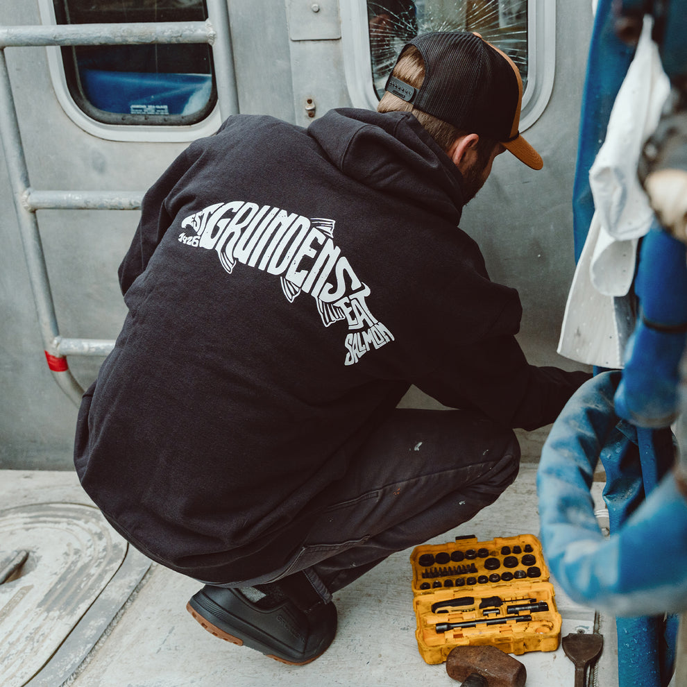 A bold evolution of our iconic “Eat Seafood, Wear Grundéns” mantra, the Eat Your Words HD DWR Hoodie celebrates the harvesters who live the lifestyle from fish to dish. Built from heavyweight 450 gsm 100% cotton and treated with DWR to repel the elements, this durable, hard-wearing hoodie is made to handle the demands of commercial fishing while only getting better with age. With a refreshed graphic identity that fuses our wordmark into the silhouettes of the species our community lives to chase, it’s more than a hoodie—it’s a tribute to the grind, the catch, and the crew who keep the world fed.