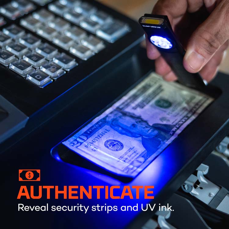 Illuminate the invisible! The SLIM® Mini UV seamlessly transitions between UV and white light modes eliminating the need to carry multiple lights on the job. The dual UVA (Ultraviolet A) Technology simplifies authentication, detection, and inspection tasks while the 150-lumen COB LED flashlight provides bright white light helping you see clearly. The broad-spectrum wavelengths provide a blended illumination and fluorescence that is ideal for detection of pet urine, inspection of auto leaks with UV dyes, pest detection such as scorpions, cleaning inspections, authentication of currency and activation of glow-in-the dark fishing lures. Its ultra-thin design fits comfortably in your hand or pocket with a low-profile clip to keep it secure. Need hands-free operation? The magnetic base has you covered. Constructed with durable aluminum housing, it's both impact and water-resistant. And with USB C rechargeability, you can fully charge it in just an hour, ensuring nearly uninterrupted performance. Say goodbye to carrying multiple lights and hello to streamlined efficiency with the SLIM Mini UV - empowering you to do more with less.